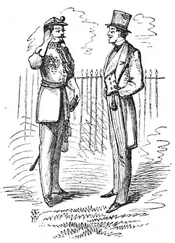 An acquaintance of mine said, the other day, that he was doubtless the only American visitor to the Exposition who had had the high honor of being escorted by the Emperor’s body guard. I said with unobtrusive frankness that I was astonished that such a long-legged, lantern-jawed, unprepossessing looking spectre as he should be singled out for a distinction like that, and asked how it came about. He said he had attended a great military review in the Champ de Mars, some time ago, and while the multitude about him was growing thicker and thicker every moment, he observed an open space inside the railing. He left his carriage and went into it. He was the only person there, and so he had plenty of room, and the situation being central, he could see all the preparations going on about the field. By and by there was a sound of music, and soon the Emperor of the French and the Emperor of Austria, escorted by the famous Cent Gardes, entered the inclosure. They seemed not to observe him, but directly, in response to a sign from the commander of the Guard, a young lieutenant came toward him with a file of his men following, halted, raised his hand and gave the military salute, and then said in a low voice that he was sorry to have to disturb a stranger and a gentleman, but the place was sacred to royalty. Then this New Jersey phantom rose up and bowed and begged pardon, then with the officer beside him, the file of men marching behind him, and with every mark of respect, he was escorted to his carriage by the imperial. Cent Gardes! The officer saluted again and fell back, the New Jersey sprite bowed in return and had presence of mind