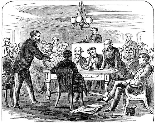 WE plowed along bravely for a week or more, and without any conflict of jurisdiction among the captains worth mentioning. The passengers soon learned to accommodate themselves to their new circumstances, and life in the ship became nearly as systematically monotonous as the routine of a barrack. I do not mean that it was dull, for it was not entirely so by any means—but there was a good deal of sameness about it. As is always the fashion at sea, the passengers shortly began to pick up sailor terms—a sign that they were beginning to feel at home. Half-past six was no longer half-past six to these pilgrims from New England, the South, and the Mississippi Valley, it was “seven bells;” eight, twelve, and four o’clock were “eight bells;” the captain did not take the longitude at nine o’clock, but at “two bells.” They spoke glibly of the “after cabin,” the “for’rard cabin,” “port and starboard” and the “fo’castle.”