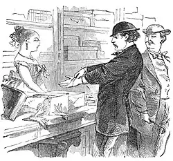 “This one does very well; it fits elegantly. I like a glove that fits. No, never mind, ma’am, never mind; I’ll put the other on in the street. It is warm here.”