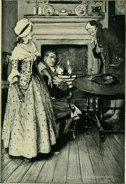"Gad, my dear, I like you!" he cried, slapping his leg. "You're a girl of spirit. Now I will make you a fair offer. If you ask for George to stay, stay he shall, as a favour to your sweet self."