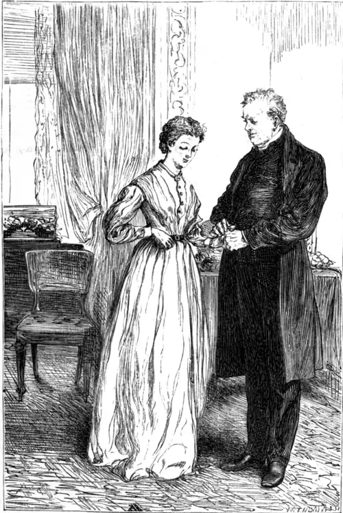 "No, I will not tell him that. Never mind about my frock, Mrs. Robarts. I do not care for that. I will tell him that I love his son and his granddaughter too well to injure them. I will tell him nothing else. I might as well go now." Mrs. Robarts, as she looked at Grace, was astonished at the serenity of her face. And yet when her hand was on the drawing-room door Grace hesitated, looked back, and trembled. Mrs. Robarts blew a kiss to her from the stairs; and then the door was opened, and the girl found herself in the presence of the archdeacon. He was standing on the rug, with his back to the fire, and his heavy ecclesiastical hat was placed on the middle of the round table. The hat caught Grace's eye at the moment of her entrance, and she felt that all the thunders of the Church were contained within it. And then the archdeacon himself was so big and so clerical, and so imposing! Her father's aspect was severe, but the severity of her father's face was essentially different from that expressed by the archdeacon. Whatever impression came from her father came from the man himself. There was no outward adornment there; there was, so to say, no wig about Mr. Crawley. Now the archdeacon was not exactly adorned; but he was so thoroughly imbued with high clerical belongings and sacerdotal fitnesses as to appear always as a walking, sitting, or standing impersonation of parsondom. To poor Grace, as she entered the room, he appeared to be an impersonation of parsondom in its severest aspect.