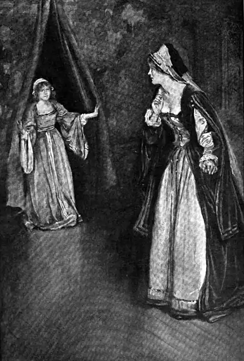 Catharine screamed, and started back with her hand to her throat. “Oh, by'r Lady! Good lack, how ghostly! Oh, why do you frighten me, child? Why are you hiding there? What have you heard?”