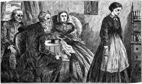 The washing-book was brought in by Rosanna Spearman. The girl had come down to breakfast that morning miserably pale and haggard, but sufficiently recovered from her illness of the previous day to do her usual work. Sergeant Cuff looked attentively at our second housemaid—at her face, when she came in; at her crooked shoulder, when she went out.