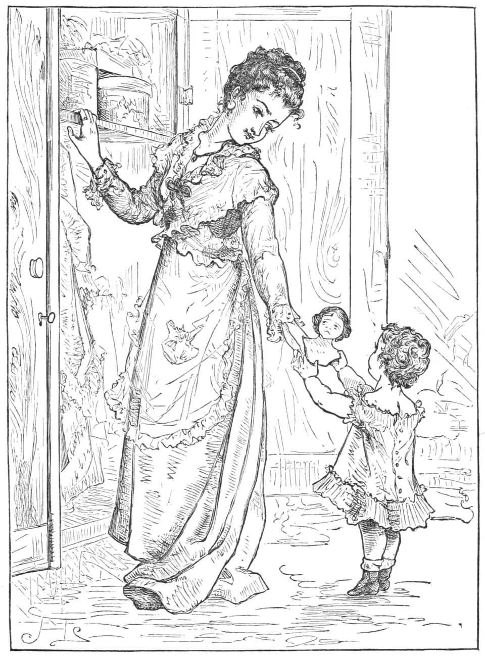 "You must know that there are countries in the world where every spring and fall the houses are all turned upside down and inside out, and then downside up and outside in, all for the sake of being clean. The women do it. What becomes of the men I don't know: they climb trees or something to be out of the way, I suppose. I like these times, of all things. I like to swing the heavy carpets to and fro on the lines, and flap the maids' aprons into their faces as they stand on the ledge outside to wash the windows. It is great fun. And I love to creep into holes and corners, and rummage and poke about to see what folks have got. And one day, when doing this in an old garret, I found the doll, who, as I said, was living in a closet. They had put her there to be out of the way of the cleaning.