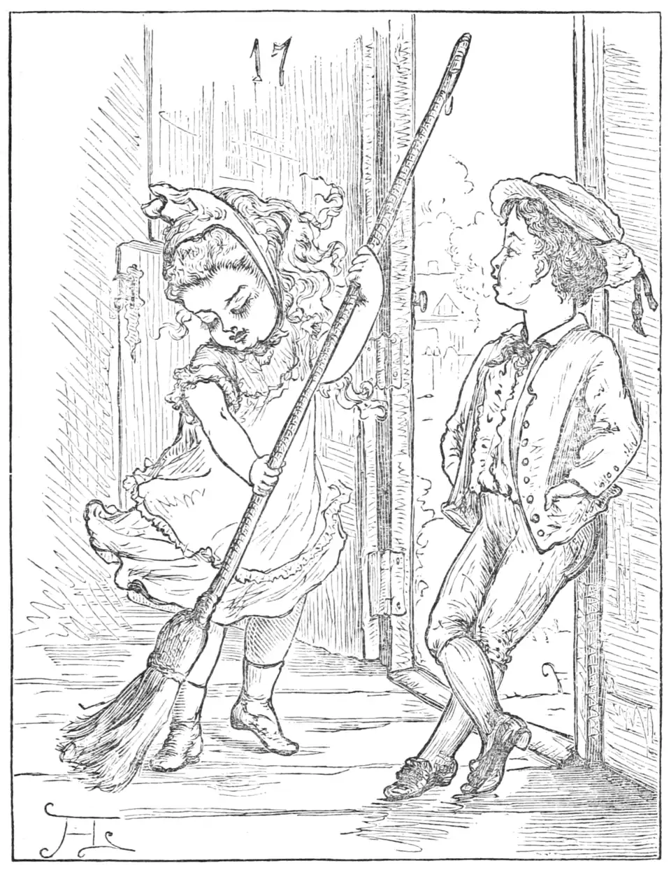 "Miss Hepsy was a kind old lady who lived next door. When she heard who her new neighbors were, she laughed till her sides ached, and lent them the broom with all the good-will in the world.
