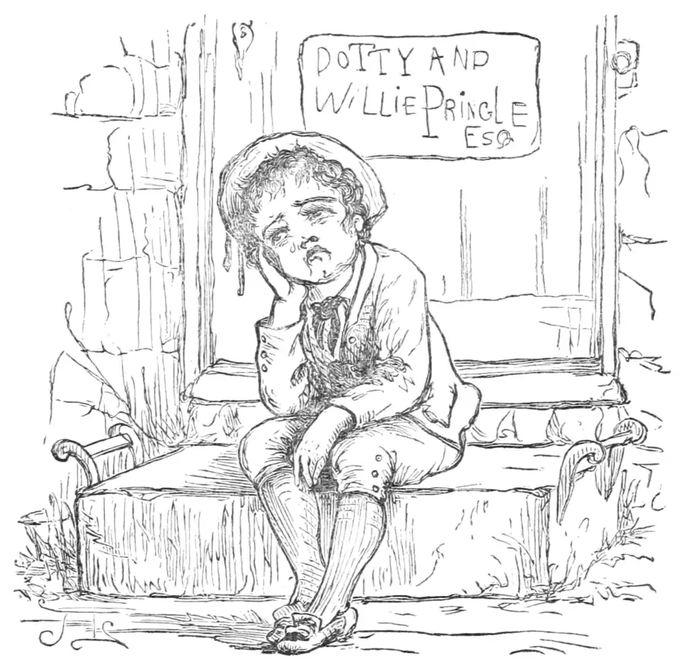"Dotty had an admirer. He was one year older than she, and his name was Willy Pringle. She loved him very much, partly because he had a jacket with two pockets, and gilt buttons down the front, and partly because when his mamma gave him any gum-drops he always brought her half of them to suck. So when he asked, 'Would she be his little wife?' she said she would.