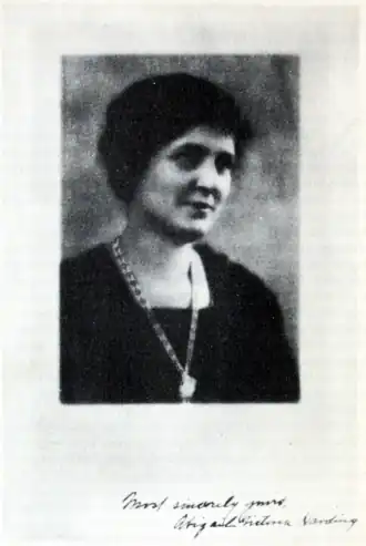 This must have been about 1908 or 1909. The following year, 1910, I entered high school and my English teacher was Miss Abigail Victoria Harding. Curiously enough, I thought that I could see in this sister of the missionary mannerisms which were decidedly peculiar to my Aunt Dell, whom I had quite adored in spite of the family incident recited above. Up to this time I had remained neutral.