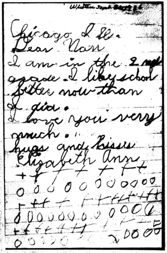 July passed and no word came from Daisy Harding. So on August 3rd I wrote her briefly, greeting her again after the lapse of a month or more and making inquiry as to whether she had seen her sister, Mrs. Votaw. When Daisy Harding speaks of Elizabeth Ann, she often calls her "Bijiba," the baby's self-imposed nickname, and in her letter she used merely the initial "B" to indicate "Bijiba."
