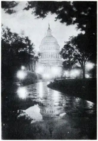 Behind us in the theatre sat a man who seemed to recognize Mr. Harding, for I heard him speak Mr. Harding's name and turned after awhile to look at him. Mr. Harding turned too later on, but said he did not know the man. I suggested that some day everybody would be turning to look at him—when he was President! In this connection I repeated to Mr. Harding what Woodrow Wilson had been quoted as having said the previous Friday night. "Well, I've got one over him!" Mr. Harding whispered to me, as the curtain rose, "I'm not tired and I am having a grand time!"
