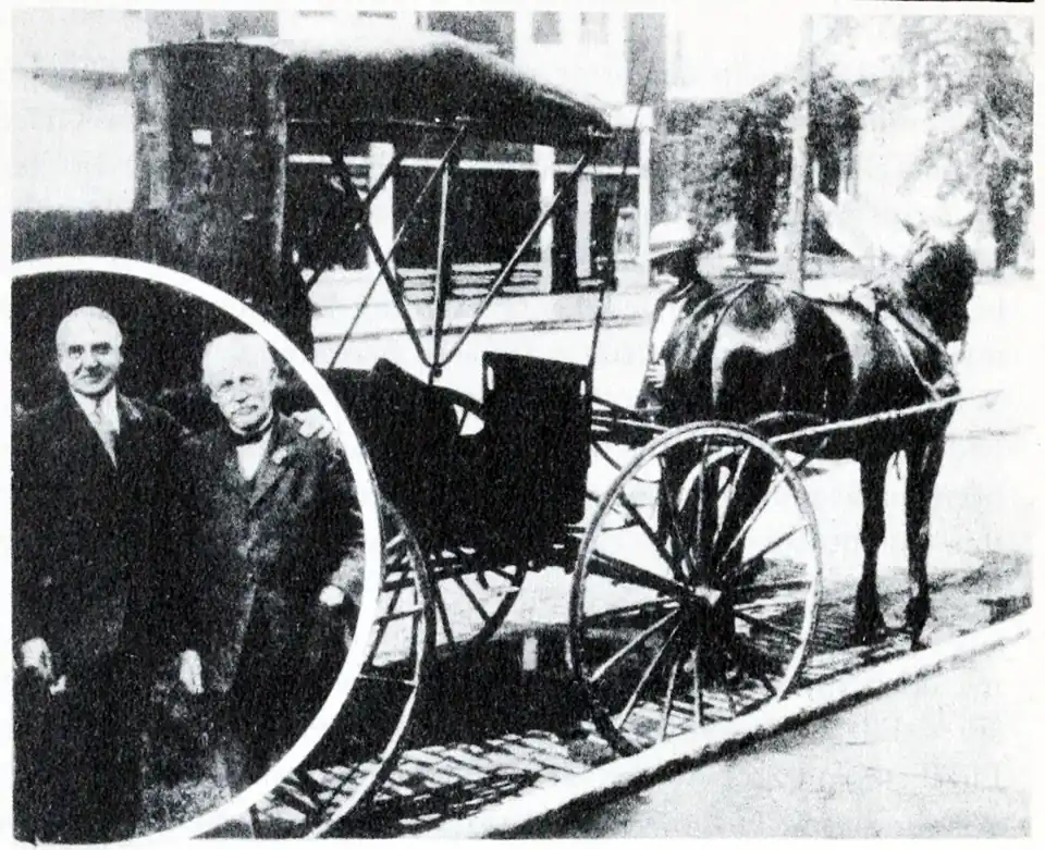 Dr. Harding with his rose and buggy on East Centre Street, Marion, Ohio, in front of the Star office