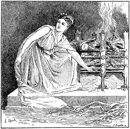 ‘Ah, poor creature, what a master you must have to treat you thus!’ she said, and pushed the halter off the hook so that the horse might turn round and eat the oats.