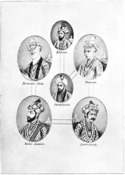 Babar — Humayun — Akbar — Jahangir — Shah Jahan — Aurangzeb — Puppet Emperors — Mahomed Shah — Nadir Shah's Invasion — Ahmad Khan Abdali — Mahratta predominance — Shah Alam — Ghulam Kadir — A Blind Emperor 210