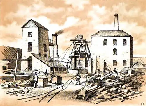 Between the shaft and the river itself, in a south-westerly direction, were a number of small cottages, built by the men employed upon the works, of stone and timber; and there were also several brick cottages, owned by the firm who carried on the Tinplate Works, and inhabited by their men.