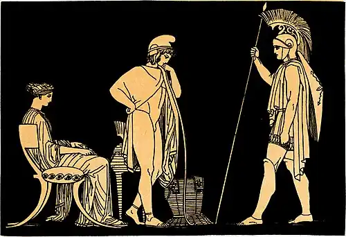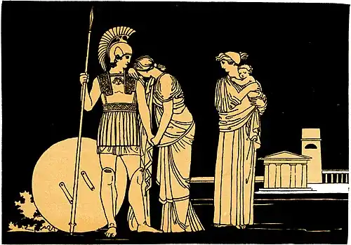 But Hector said: "Ask me not to rest, for I am eager to help the men of Troy, for verily their need is sore. But do thou urge thy husband that he overtake me while I am yet within the city, for now I go to my home that I may see my wife and my little son, because I know not whether I shall return to them again."