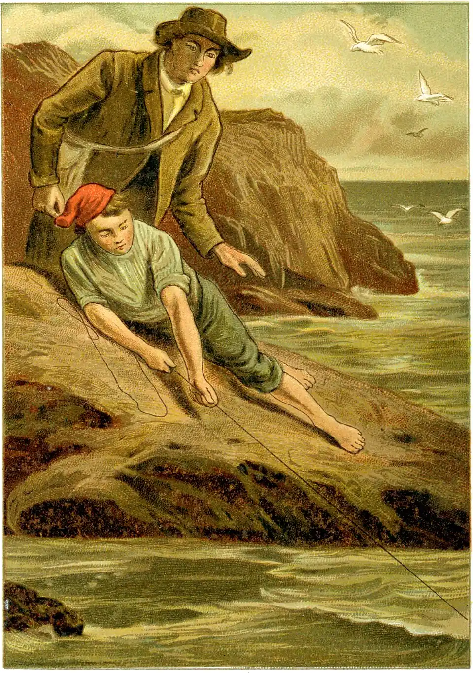 “Father, father! I've caught a fish! an immense fellow he is. I can scarcely hold him, he drags the line, so.”