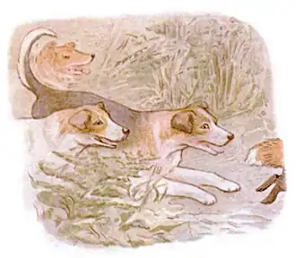 Then he went out, and trotted down the village. He went to look for two fox-hound puppies who were out at walk with the butcher.