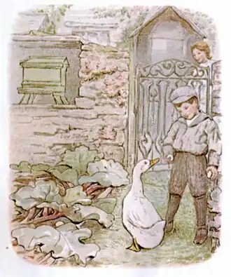 The collie-dog Kep met her coming out, "What are you doing with those onions? Where do you go every afternoon by yourself, Jemima Puddle-duck?"