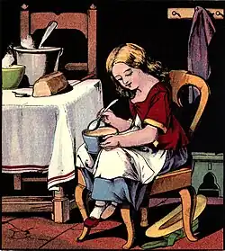 GOLDENHAIR EATS UP TINY-CUB'S PORRIDGE.