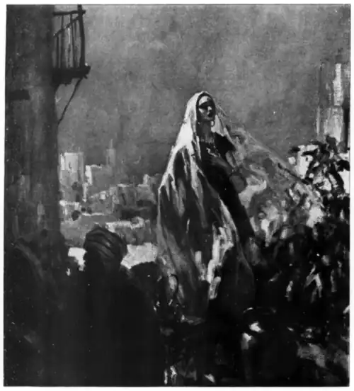 Gouthia did not sleep that night. Morning came with elfin lights and rose-red shadows. It came with the teeming of streets and bazaars and, from the minaret of the Mosque of the Swords, with the muezzin's call to the first prayer of the day. It came, at last, with the thud of the knocker on the outer gate, and Gouthia ran to the latticed balcony and looked out. Down below was Hassan.