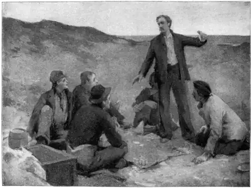 The truth was soon plain to all. No buoys, no beacons, no lights, no coal, no station; the castaways pulled through a lagoon and landed on an isle, where was no mark of man but wreckwood, and no sound but of the sea. For the sea-fowl that harboured and lived there at the epoch of my visit were then scattered into the uttermost parts of the ocean, and had left no traces of their sojourn besides dropped feathers and addled eggs. It was to this they had been sent, for this they had stooped all night over the dripping oars, hourly moving further from relief. The boat, for as small as it was, was yet eloquent of the hands of men, a thing alone indeed upon the sea but yet in itself all human; and the isle, for which they had exchanged it, was ingloriously savage, a place of distress, solitude, and hunger unrelieved. There was a strong glare and shadow of the evening over all; in which they sat or lay, not speaking, careless even to eat, men swindled out of life and riches by a lying book. In the great good-nature of the whole party, no word of reproach had been addressed to Hadden, the author of these disasters. But the new blow was less magnanimously borne, and many angry glances rested on the captain.