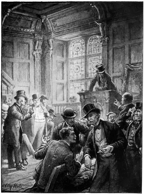 “I warn you,” cried the attorney, with sudden shrillness. “Have a care what you're about. You are here to sell for the underwriters, let me tell you—not to act for Mr. Douglas Longhurst. This sale has been already disgracefully interrupted to allow that person to hold a consultation with his minions; it has been much commented on.”