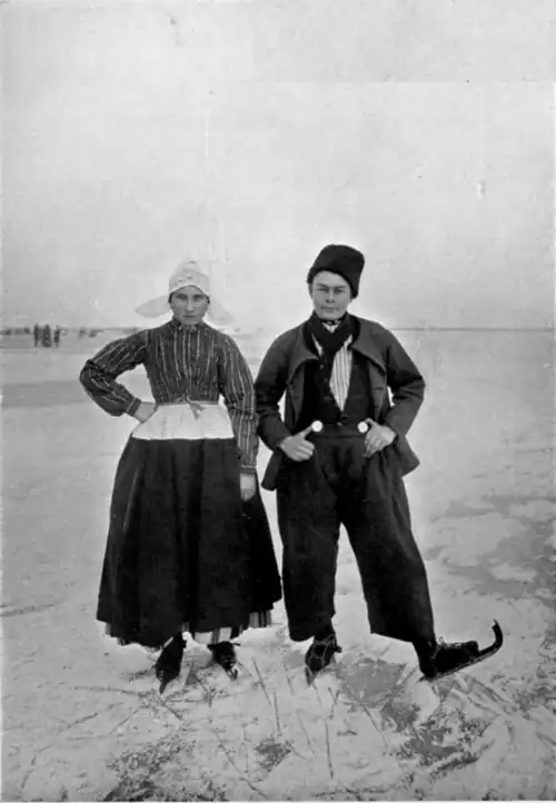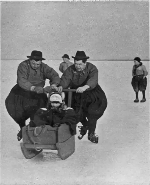 Markeners pushing along an “ice-chair” on the Zuider Zee.