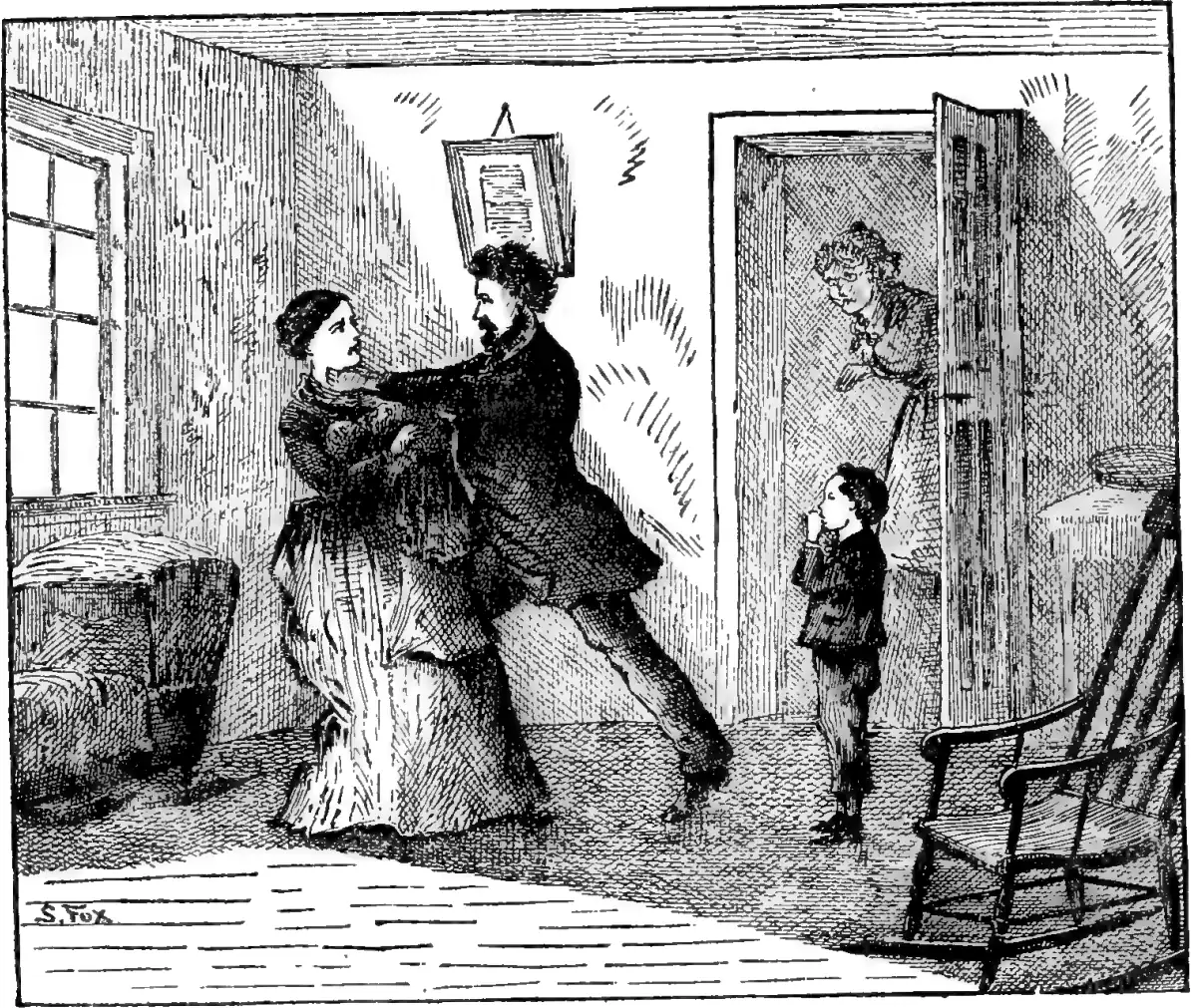 In an instant, my husband, maddened with fury that I should dare to contradict him, seized me by the throat, and threw me back into the chair. The screams of the terrified child brought my mother, into the room at once. She snatched the baby from my arms, which I still held clasped convulsively, while my husband's fingers were tightening about my throat. I was dizzy with pain, and almost suffocated from the grip; but my maternal instinct was stronger than the pain, and I never relaxed my hold on my child.