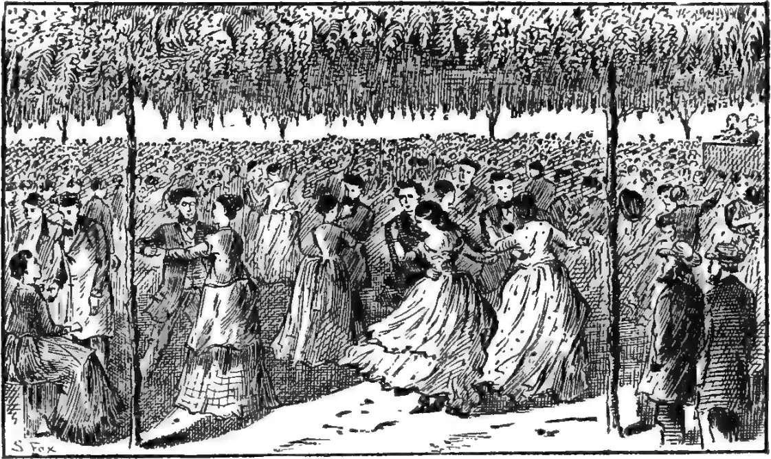 Of course dancing-parties were frequent then, even when there was nothing but the "Bowery" for a ball-room, with the earth for a floor. Joseph Smith had told them that it was the will of the Lord that they should "make themselves merry in the dance," and, like the consistent Christians they were, they determined that the Lord's will, in this matter at least, should be done. They had danced in the Temple at Nauvoo, they had danced while crossing the plains, and now they commenced again, in the only place of worship which the city boasted, which was an open space, overarched by boughs of trees. This served as tabernacle and dancing-room while the weather permitted; after which the religious services were held at Brigham's own house, the dances at the different houses.