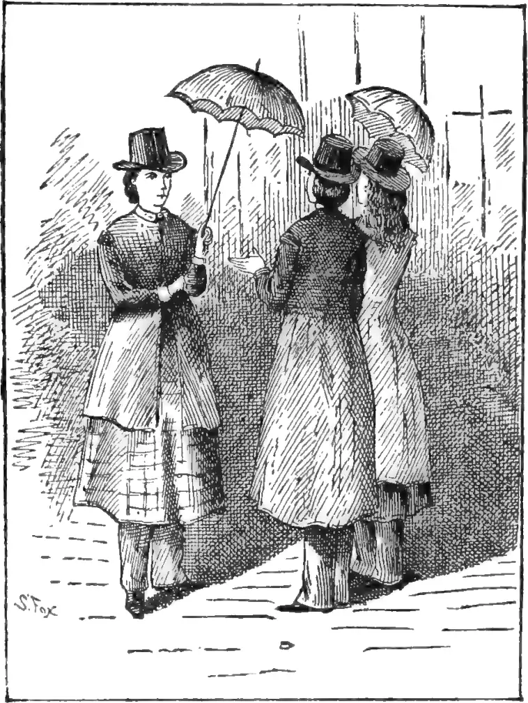 The trimming of dresses also comes in for a full share of Brother Brigham's condemnation; but he likes to have all the scolding and fault-finding to himself. If any one else ventures to express a like opinion, he is more than likely to disagree with them, probably from pure contrariness. I remember an incident that illustrates this, which took place at family prayers at the Lion-house one evening. One of the Prophet's daughters, Fanny, a very pretty, stylish girl, came into the parlor wearing a black wrapper trimmed with rows of red braid. The sight of this seemed very greatly to exercise Eliza Snow, — a proxy wife of Brother Brigham, — and she exclaimed in a shocked tone, —