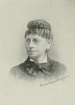 SCHAFFNER, Mrs. Ernestine, "The Prisoner's Friend," is a citizen of New York City. She is the possessor of wealth, that enables her to indulge her charitable leanings in a substantial way. She has always felt a deep interest in the criminal and downtrodden people of her city, and since 1885 she has done remarkable work in behalf of prisoners of both sexes, who are under arrest or serving sentences in the city prisons. She has an office at No. 21 Center street, near one of the prisons. Over the door is the legend: "Free Advice to the Poor and to the Innocent Accused." She visits the courts and devotes her time to the relief of the prisoners. She is a woman past middle age, and her work has been carried on alone. She was drawn into the work in a simple-way. One day she read in an evening paper of a young German immigrant, who, having been arrested for some trivial offense, was so overcome by the disgrace that he tried to commit suicide. The next morning she bailed him out, and so impressed was she by his story and her belief in his innocence. She began to think of how many innocent people may be unjustly accused of crime, and how she could help them, should she make it her life-work From that time she devoted herself