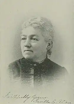 ALLEN, Mrs. Esther Lavilla, author, born in Ithaca, N. Y., 28th May, 1834. While she was was a child, her parents removed to Ypsilanti, Mich., where her youth was passed, and she was educated in the seminary of that town. In 1851 she was married, and for the past few years her home has been in Hillsdale, Mich. She wrote verses in her youth but study first and then domestic cares occupied her attention. She began her literary career in earnest in 1870, when her powers were fully matured. She wrote stories, sketches and poems for publication, and her productions were of that character which insures wide copying. She contributed to the "Ladies' Repository," the "Masonic Magazine," the "Chicago Interior," the "Advance," the "Northwestern Christian Advocate" and other prominent periodicals. Much of her work has been devoted to temperance and missionary' lines but she writes countless poems for all kinds of occasions. Besides her work as a writer, she is a fine reader and she has often read her poetical productions in public, mainly before college societies. Recently she has done less of this work. Mrs. Allen has never collected her productions, although there are enough of them to fill a number cf volumes. At present she is engaged in literary work