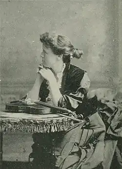It is claimed that Miss Osgood's was the first fully organized professional orchestra of the best class, composed exclusively of women, that has done public service in America, and perhaps in the world. That orchestra, called by her name, consisting of brass and wood-winds and tympani, as well as strings, has won brilliant success, season after season, in social circles and upon the concert platform, and has secured praises from the most exacting metropolitan critics. Her example has been widely imitated, both with and without some measure of success, and to-day professional orchestra-playing by women upon brass, wood-wind, strings and tympani is an established feature of American musical life. Miss Osgood is not desirous of being known to fame mainly as an orchestral conductor. She is giving more and more of her time to solo playing, to musical composition and to teaching and she already ranks among the first of women violinists in this country. Among her many published works are a "Fantaisie Caprice." an album of descriptive pieces for violin and piano, and the song "Loving and Loved." She is