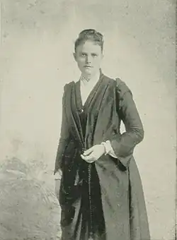 During her years of residence in Des Moines, Iowa, she had the advantage of a public school, but when she was twelve years old. the family removed to the wild prairies of Dakota. There she found plenty of time and opportunity for continued physical culture, riding a great deal, chiefly to and from the post-office, which was three miles from her home. She had much time for reading, but, excepting two terms in a winter school taught by an older sister, there was no opportunity for mental culture outside of her home. In that home, where both parents were of intellectual tastes, there was less need of outside influences for culture. Evidence of that fact is shown in the mental life of all the daughters, who have become well known in their chosen professions. After three years spent in teaching in Sioux Falls, at the age of twenty-one, she entered the Whitewater Normal School, and had one year in preparation for college. She won a scholarship in mathematics on her entrance to Cornell University, where she was graduated in 1889. She at once entered the Unitarian ministry. Her first charge was in La Porte, Ind., where she remained one-and-a-half years. She was called from that place to minister to a fast-growing society in Grand Rapids, Mich., in which place she is now working successfully. The bent of her mind was always towards theological subjects. She united with the Baptist Church when she was nine years of age, but gradually drew away from that, until she took her place with the Unitarians. Her main characteristics are candor, generosity, conscientiousness, and notably the power of adapting herself to the minds of all ages and modes of thought. She has the happy faculty of meeting the young, the old and middle-aged on their own ground. Her discourses fulfill the promise of her early thoughtfulness, in their clear, logical and simple, yet forceful, presentation of the subject in hand, and her quiet dignity of manner gives added strength to the words that fall from her lips.