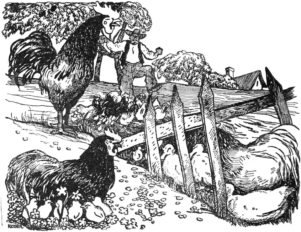 “Through that opening in the fence—you understand—her chickens are flocking into my garden and are causing all kinds of damage. My poor dead wife used to like to keep chickens and I myself enjoy seeing a brood of fine golden goslings or speckled chicks cheeping around a bustling mother-hen. But Mrs. Vrchcabova even in that line passes all limits. Her yard is a regular poultry barracks.