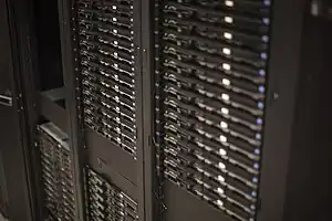 One of the Wikimedia server racks at CyrusOne.