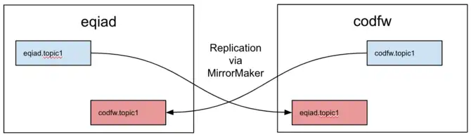 In cases like these, it becomes clear that a better topic prefix is the name of the source Kafka cluster, not the data center name.