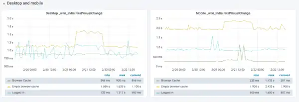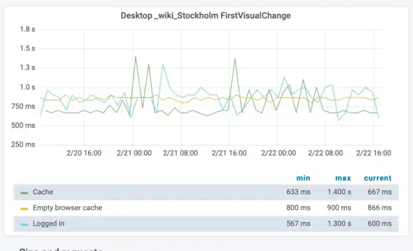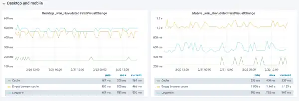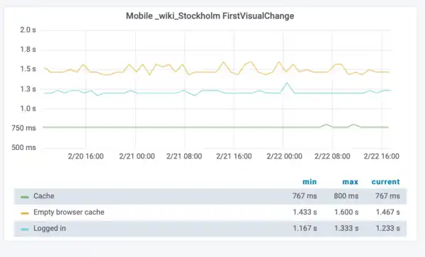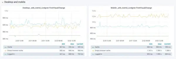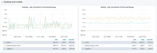 • A user that is not logged in and have visited other Wikipedia pages before, always have the fastest experience. This is true on both mobile and desktop.