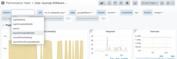 We have one user journey where we log in a user, measure the login step, and then access three pages (as a logged in user). The journey looks like this: https://en.m.wikipedia.org/w/index.php?title=Special:UserLogin&returnto=Main+Page -> login the user -> https://en.m.wikipedia.org/wiki/Barack_Obama -> https://en.m.wikipedia.org/wiki/Facebook -> https://en.m.wikipedia.org/wiki/Sweden.