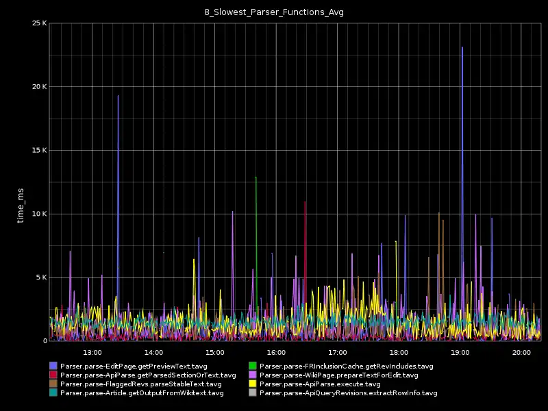 - url to generate: http://graphite.wikimedia.org/render?width=800&from=-8hours&until=now&height=600&vtitle=time_ms&target=highestMax(Parser.*.*.tavg%2C8)&title=8_Slowest_Parser_Functions_Avg