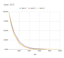 Different values of the rate and base settings produce different probability curves, and can be visualized using a spreadsheet made by the traffic team for this purpose.