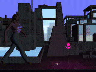 Feel free to play around with the frames of your animation. The example shown in Figure 6 (below) is a scene with the character walking along a street near sunset. It looked like something was being stepped on, so a can was added to the scene!