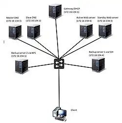 2-The DNS server acts as the standby webserver. So even if the system crashes, the DNS server was present to handle it. The rsync keeps the back-ups synced between the Webserver and DNS.