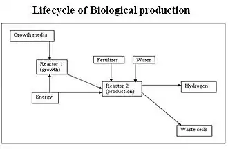 - ↑ Wikipedia “Biological production of hydrogen using algal biomass.” Available at: http://en.wikipedia.org/wiki/Hydrogen_production [Accessed:March 10, 2008]