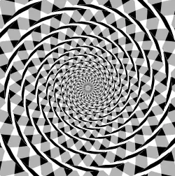 In the Fraser spiral illusion, shown here, the overlapping black arc segments appear to form a spiral; however, the arcs are a series of concentric circles.