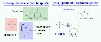 This diagram indicates the components of a nucleotide. Credit: Calibuon.