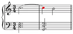 This type of suspension often occurs when the leading note has been in the previous chord, such as in a perfect cadence. The leading note is held on before resolution.