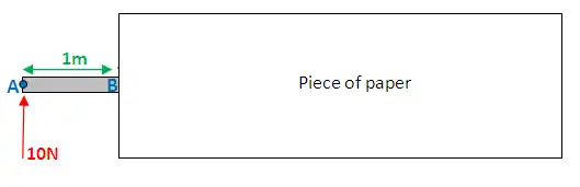 Now, let's do this for point B. BUT - slight complication - there's a force acting at point B, are you going to include it? The answer is both yes and no. You need to take 2 measurements. Firstly put your piece of paper, so it's JUST before point B: