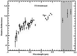 - ↑ 66.0 66.1 66.2 66.3 66.4 66.5 66.6 Ai Kanno; Takahiro Hiroi; Ryosuke Nakamura; Masanao; Masateru Ishiguro; Sunao Hasegawa; Seidai Miyasaka; Tomohiko Sekiguchi et al. (2003). "The first detection of water absorption on a D type asteroid". Geophysical Research Letters 30 (17): 1909-12. doi:10.1029/2003GL017907. http://www.planetary.brown.edu/~hiroi/GRL2003Kanno.pdf. Retrieved 2014-01-09.