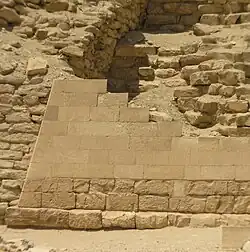 Construction Techniques : Accretion method: Courses of masonry were put down inclined towards the middle of the pyramid. The basic material consisted of limestone blocks.[2]