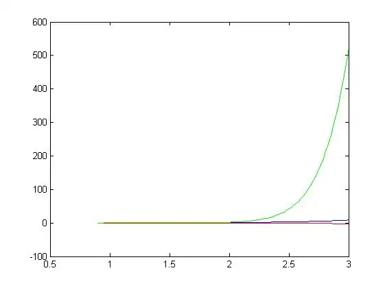 Plotting the aboved vector of y-values,along with the results from earlier yields the following graph: